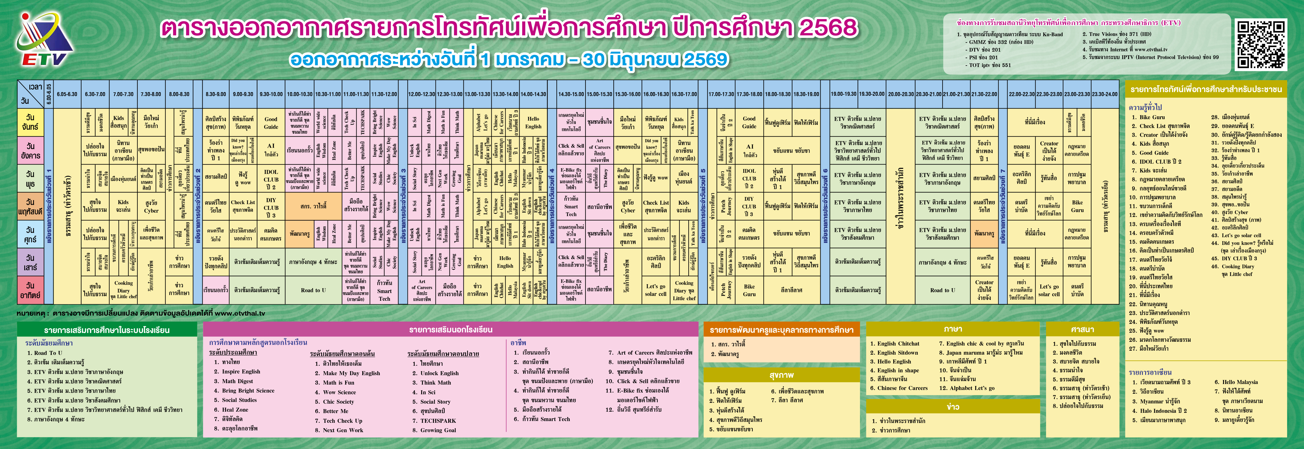 | เวลา | รายการที่ออกอากาศ |